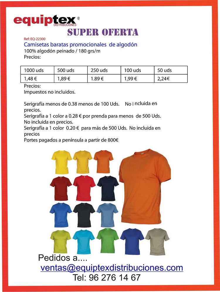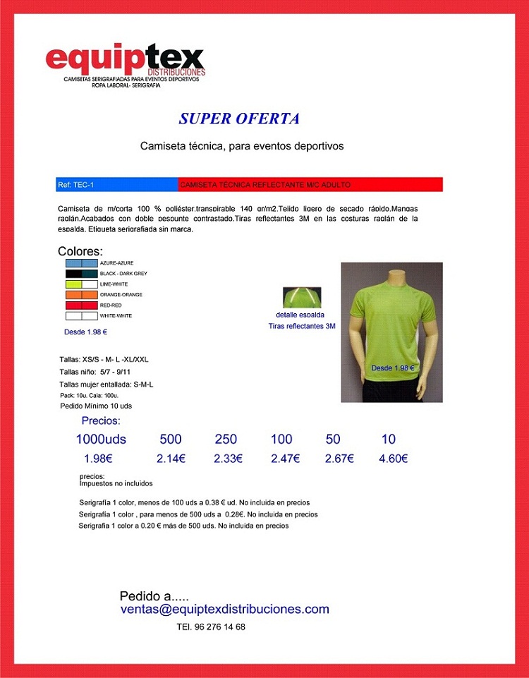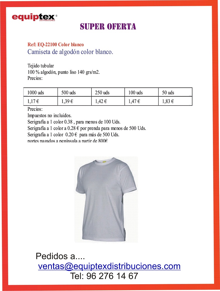 Tel. (+34) 96 276 14 67 - Tel. (+34) 627 151 827 Mail: ventas@equiptexdistribuciones.com Dirección: Virgen de los desamparados, 67 46185 La Pobla de Vallbona (Valencia) |